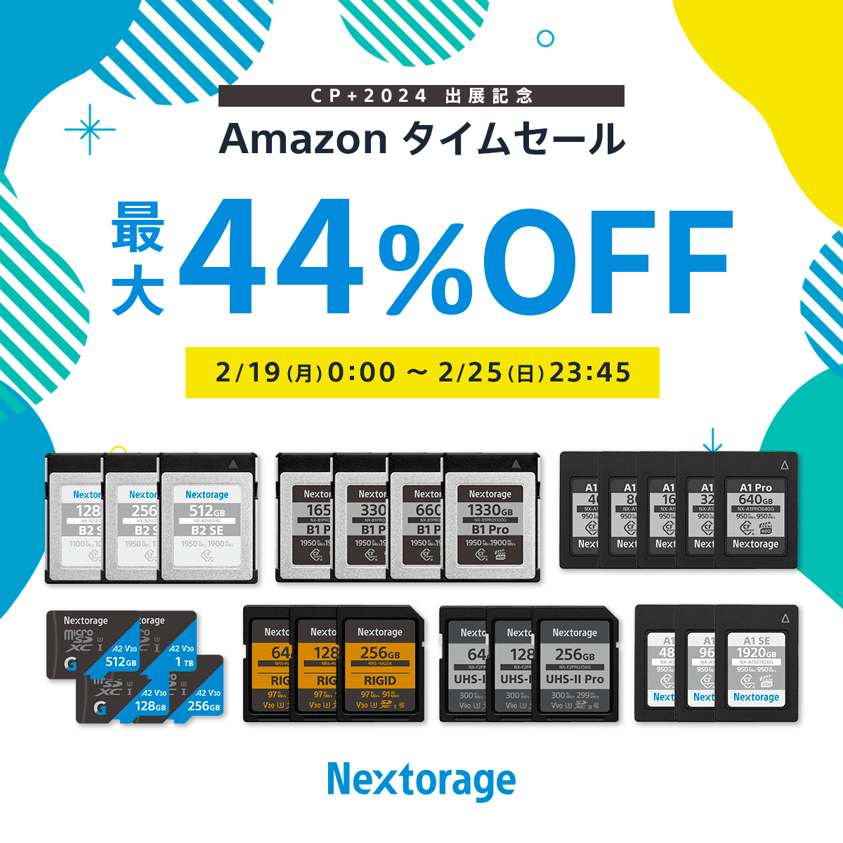[Nextorageセール情報] AmazonにてCP+2024出展記念セール開催のお知らせ CP+2024 Nextorageブースで配布のクーポン利用でセール価格からさらに3%OFF
