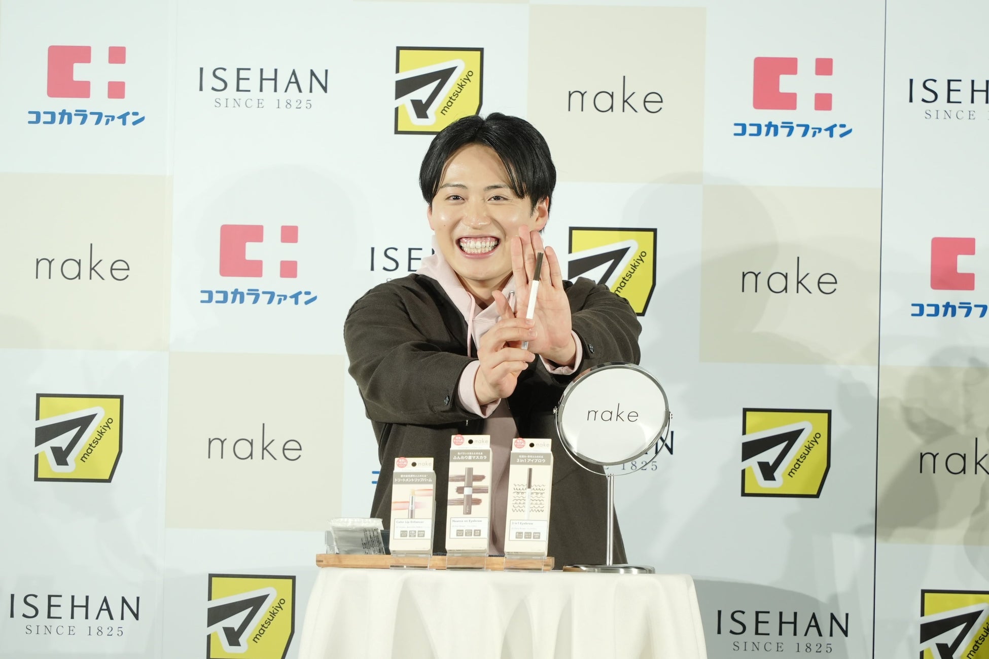 発表会の後半では、池田さんに「nake」アイテムを使用した、メイク実演をしていただきました。普段からご自身でもメイクをする池田さんがアイテムの使用感をリポート。「nake 3in1 アイブロウ」と「nake ニュアンス オン アイブロウ」を試して「こうやって整えてあげるのがすごく塗りやすい、すごい垢抜け!」と太鼓判。「3wayめっちゃいいですね、3本分がこれでいけちゃうんですよ?!これすごいですね~、本当に一本持っておきたい」と何度も感心した様子で語りました。実際に「nake」を使用してご登壇いただいた山之内さんも「私髪の毛を染めてないんですけど、それでもすごく馴染む!」と驚いた様子で、「すっぴんに自信が持てちゃう!」と絶賛。最後にお二人で記念の自撮りをして、「笑い方が兄妹みたい、東京で頑張ってる妹に会いにきたお兄ちゃんみたい!」と盛り上がり、山之内さんも「この写真ほしい!」と終始息ぴったりの様子でした。