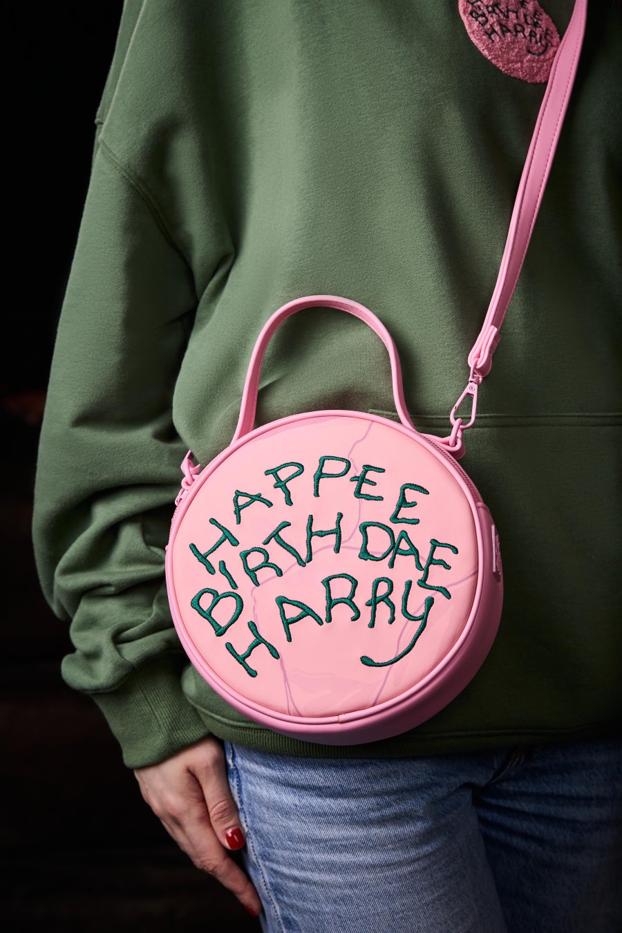 ハリー・ポッター ショップ限定のショルダーバッグ。ピンクとグリーンのスペルミスが入ったアイシングを刺繍で表現し、あのチャーミングで不格好なバースデーケーキを完璧に再現しています。ハグリッドの傘をかたどったジッパーチャームなど、ディテールにまでこだわったこのバッグで誕生日の魔法を持ち歩きましょう!