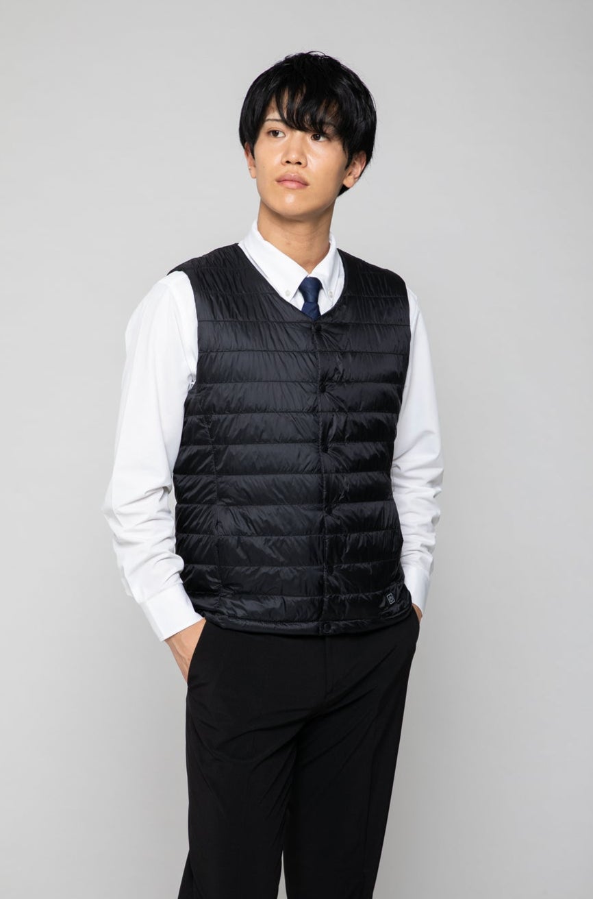 電熱ベストSUGU HEATは、その名の通りボタンを押すだけでウェア内のカーボンヒーターフィルムが速攻で発熱、すぐに身体を暖めてくれます。ジャケットなどのアウターの下に着用できるよう、驚くほど軽量で薄手。アウター使いもできるジャケット含め、メンズとレディースで展開中。