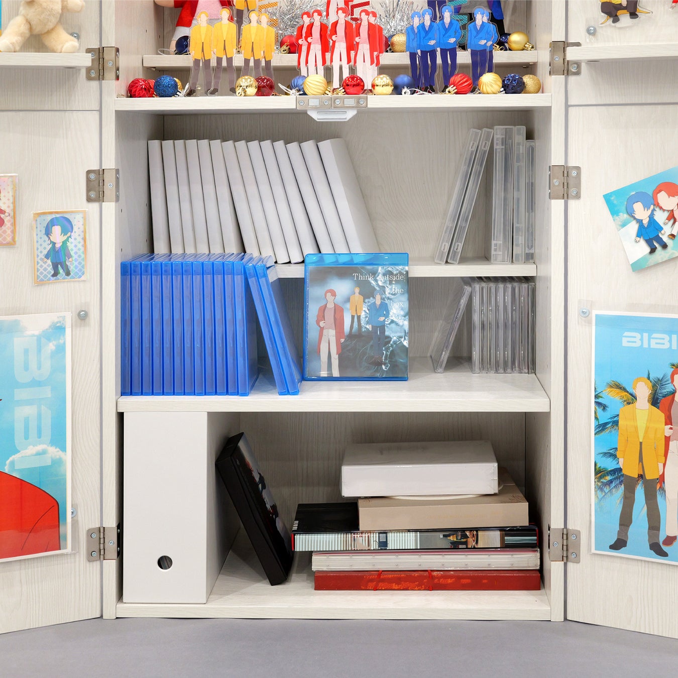 推し活を続けるうちに、どんどん増えゆくグッズ達。せっかくならキレイに飾りながら収納しておきたいものですが、物量が多くて置き場に困ったり、ごちゃついて見えて部屋の雰囲気から浮いてしまうことも。『秘密の推し棚』は、アクスタなどの小物から大判サイズの写真集まで、あらゆるグッズをひとまとめに保管できる大容量設計のキャビネットです。
