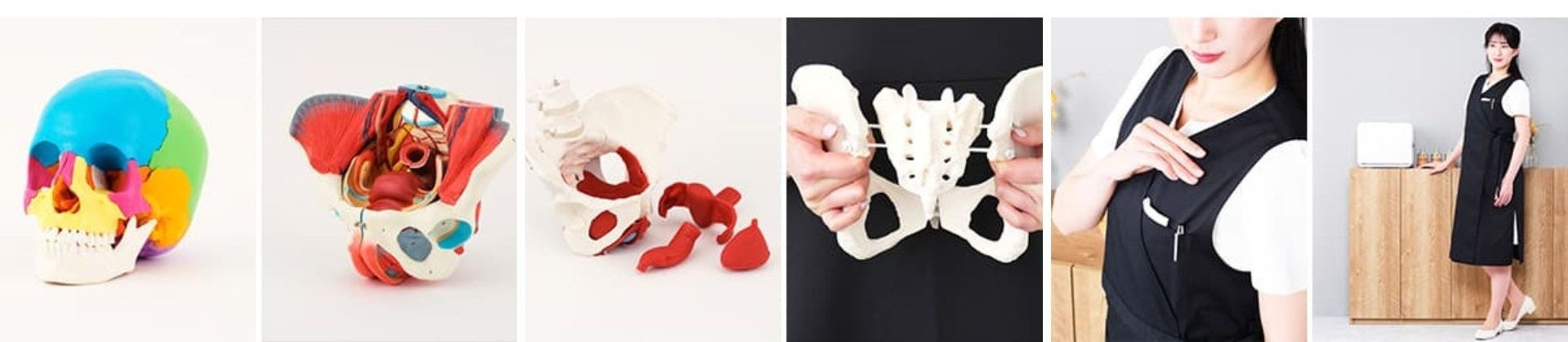 SEVEN BEAUTY骨模型の新商品を展示!お問い合わせの多かった頭蓋骨と女性の骨盤模型に、分解できる模型が新登場しました。お客様とのコミュニケーションツールとしておすすめの骨模型をこの機会にお試しください。