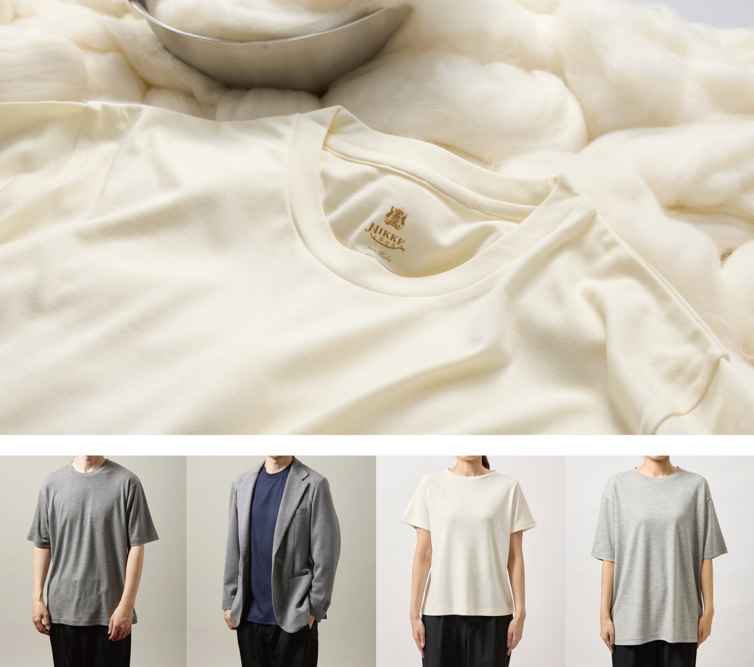 NIKKE 1896は、超極細のメリノウールを用いたなめらかな肌さわりに徹底してこだわり、Tシャツやウールデニム、オーダースーツなど幅広いアイテムをご提供しているウール専門ブランドです。
