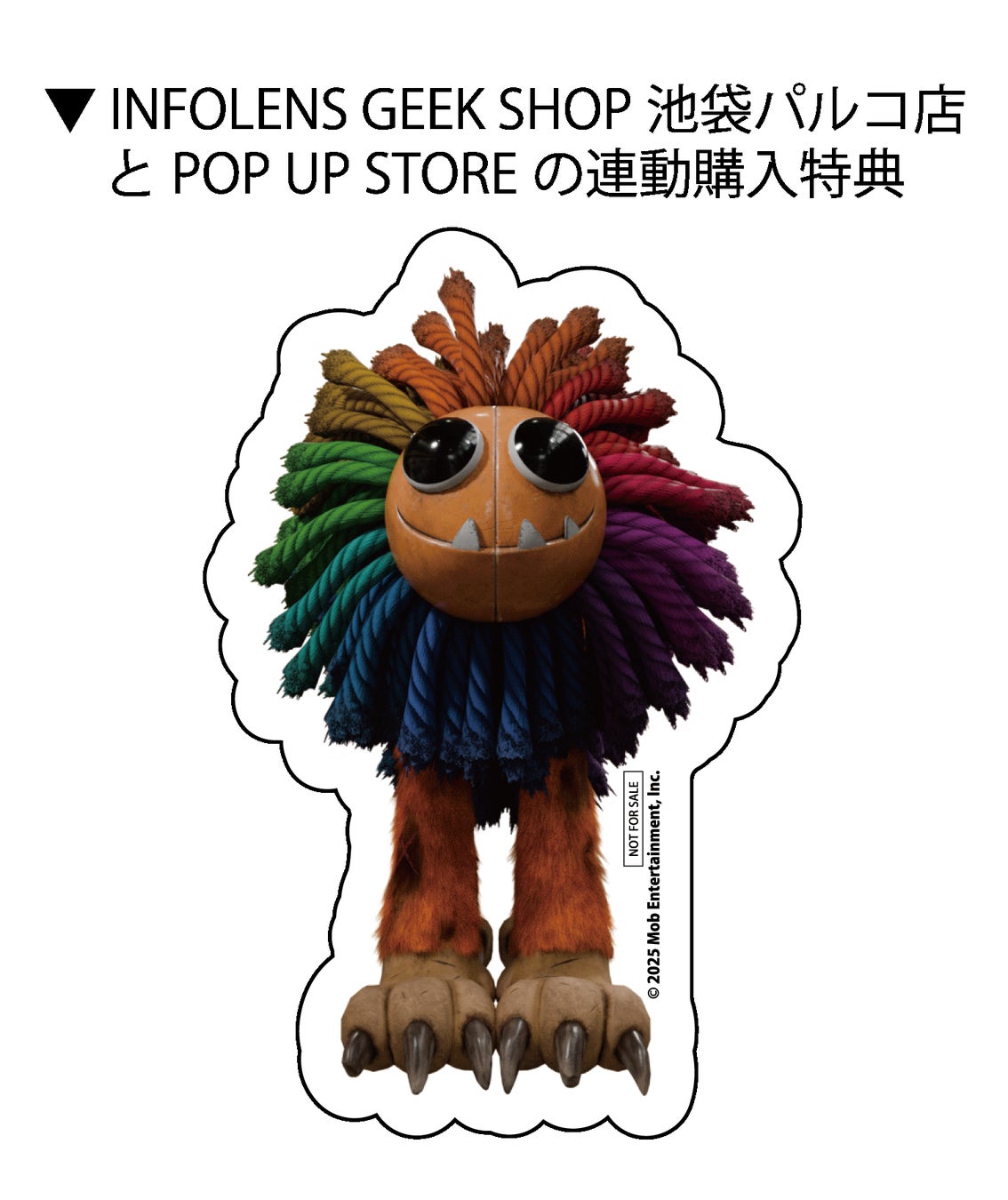 2/20~3/3の期間中、『POP UP STORE』と『INFOLENS GEEK SHOP池袋パルコ店』のお買い上げレシート2枚をPOP UP STOREまたはINFOLENS GEEK SHOP池袋パルコ店のレジにご提示いただくと、特典【ダイカットステッカー】を1枚プレゼント!