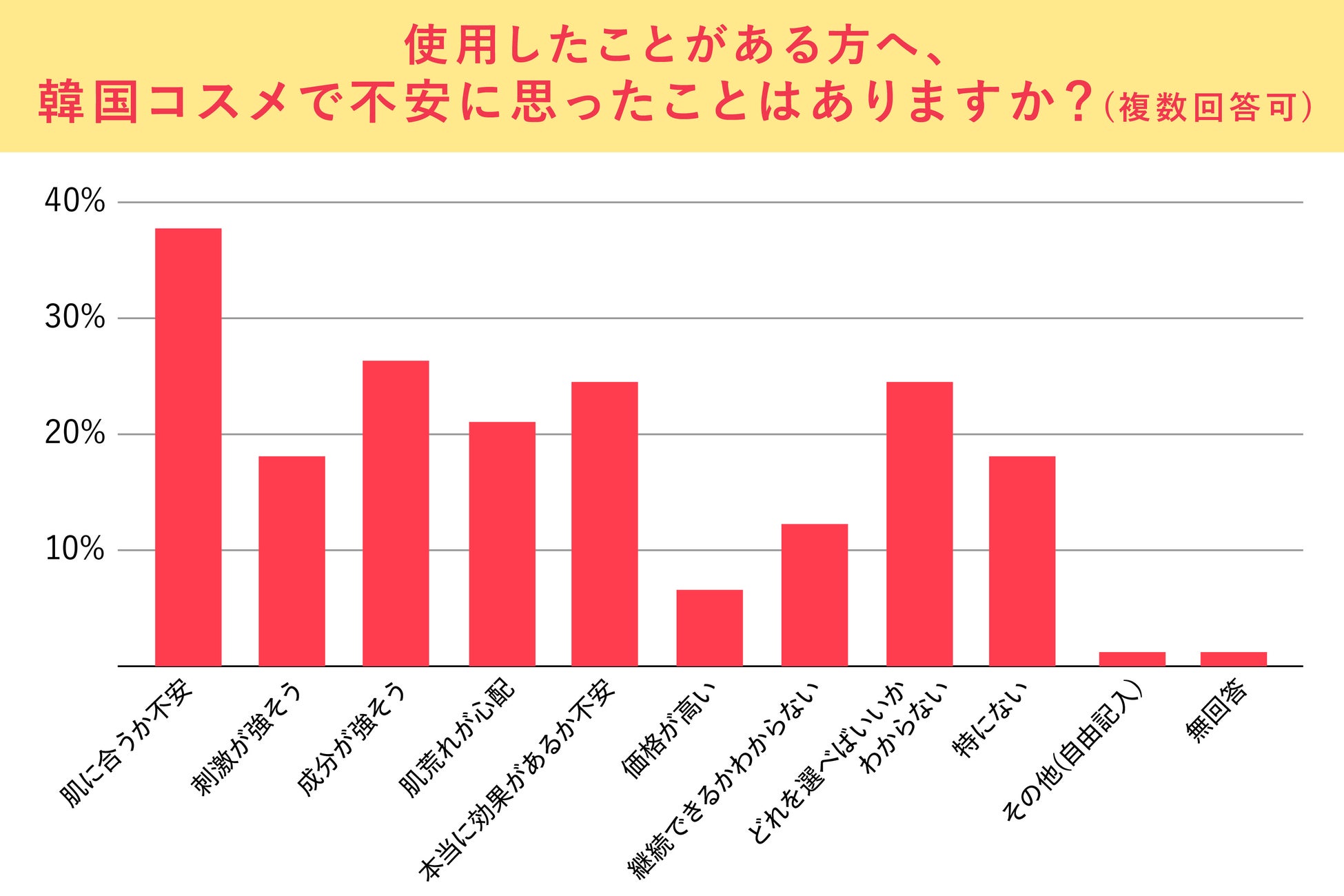 実際に使用経験がある層においても、「刺激」や「成分の強さ」、そして「自分に合っているかどうか」といった点への不安が一定数存在しており、韓国コスメは「魅力を感じながらも慎重に取り入れられている」ことがうかがえます。