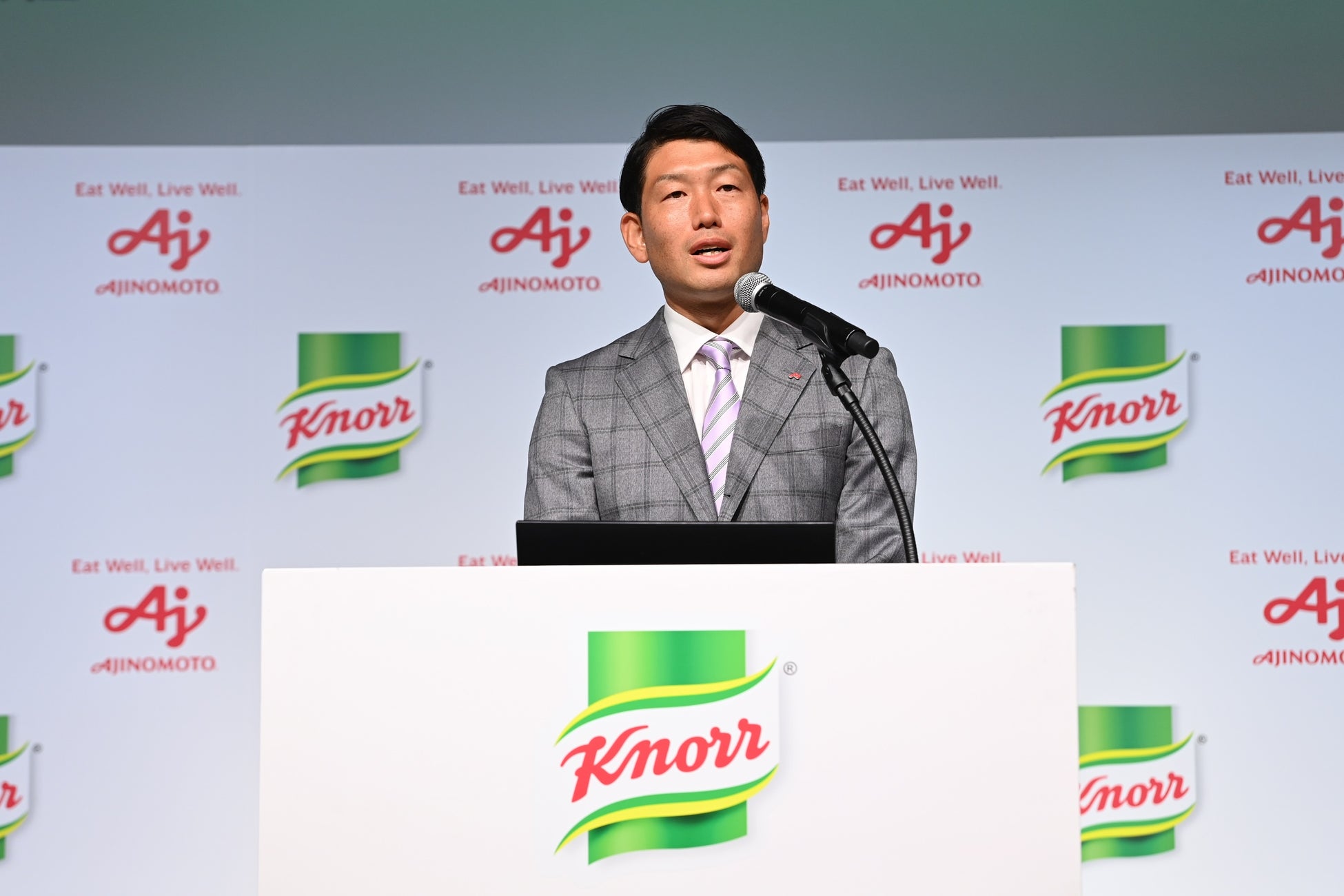 発表会の冒頭では、味の素株式会社 コンシューマーフーズ事業部 スープグループ 鈴木 博之より2024年度の新コミュニケーションについてプレゼンテーションを行いました。