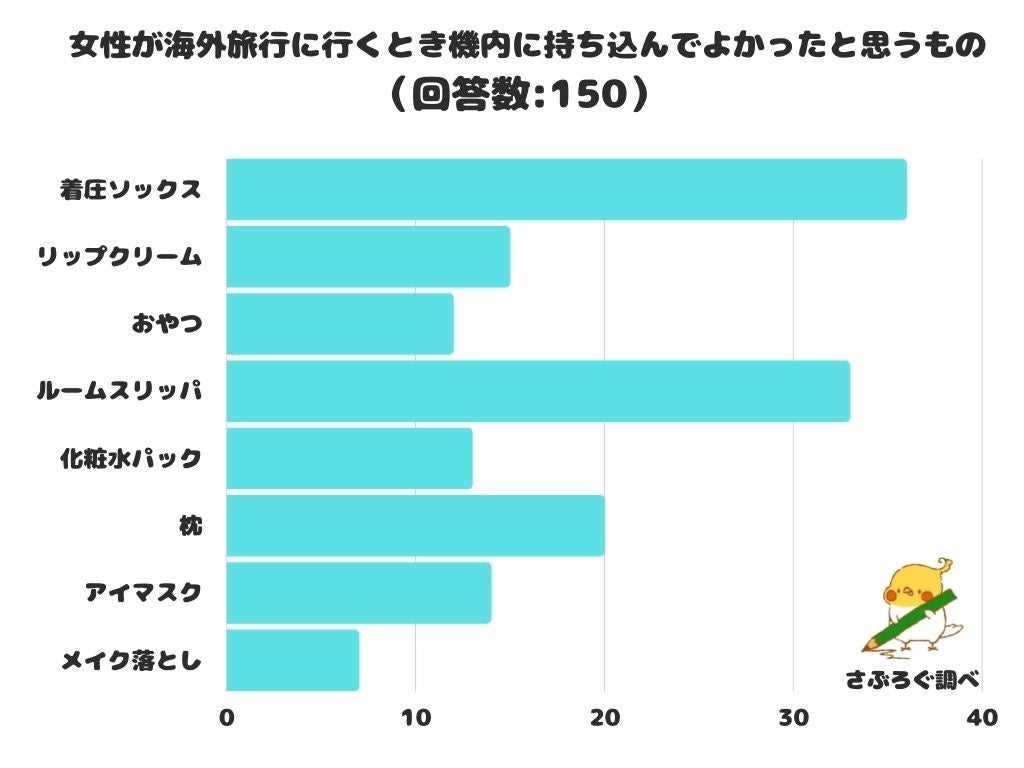 【調査レポート】女性が海外旅行に行くとき機内に持ち込んでよかったと思うものは?1位は「着圧ソックス」!
