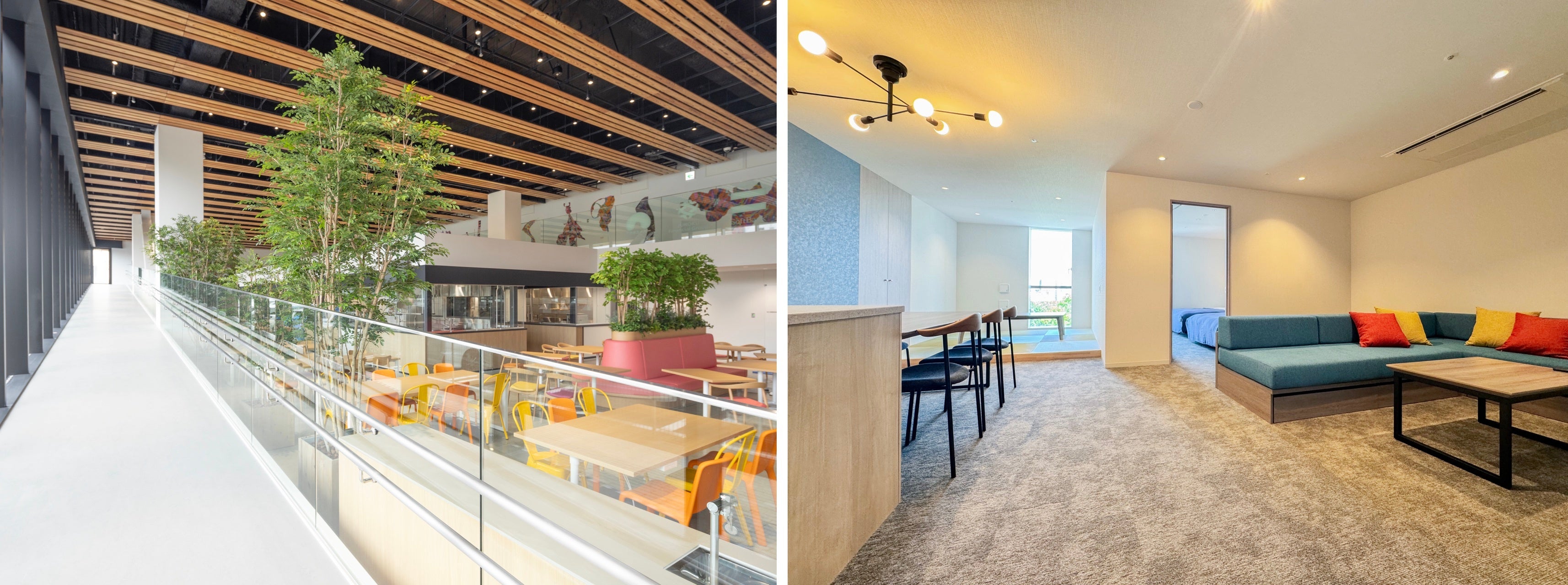 (左)1F 飲食スペース/(右)7F 宿泊施設「Minn STATION Ai Nagoya」