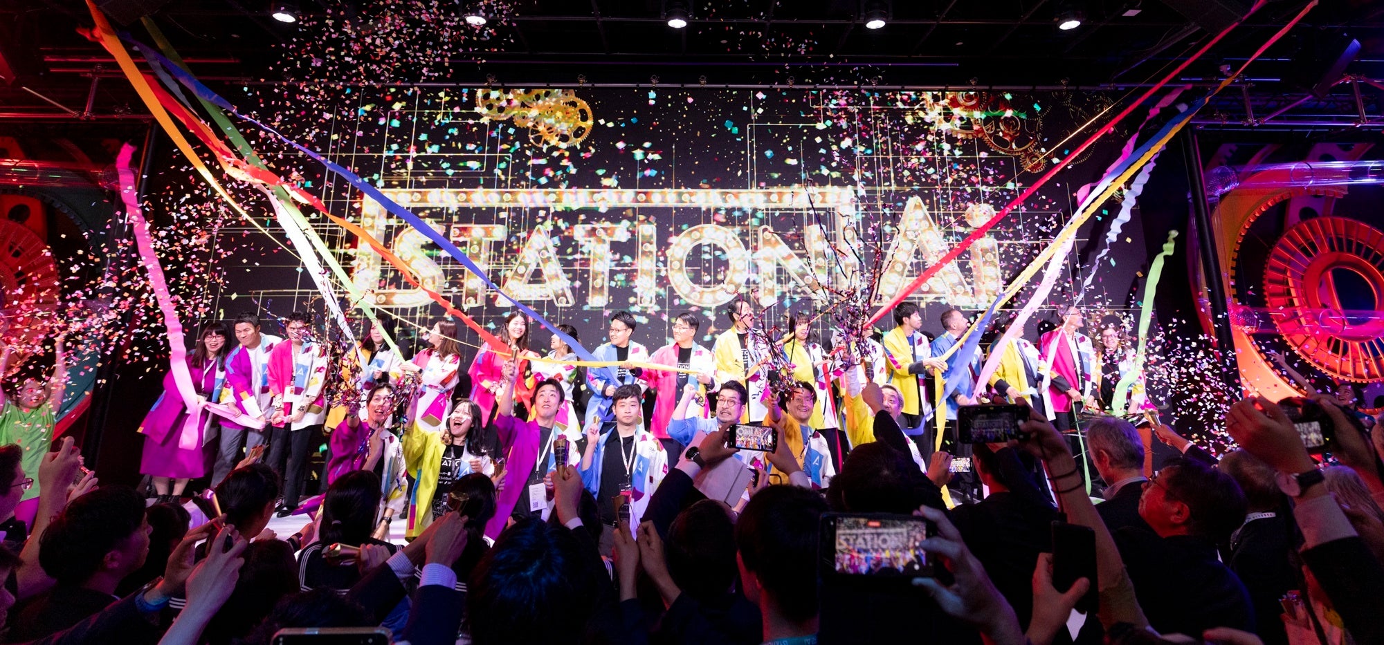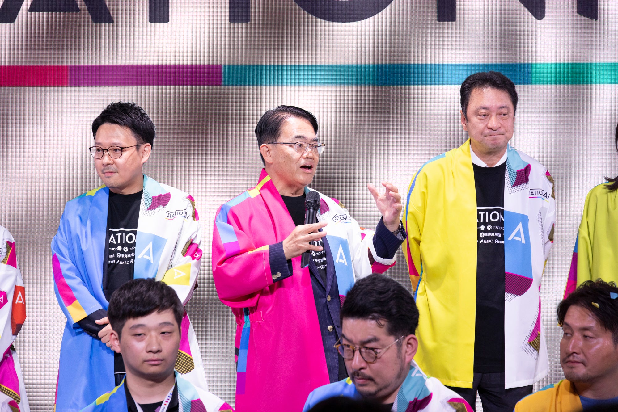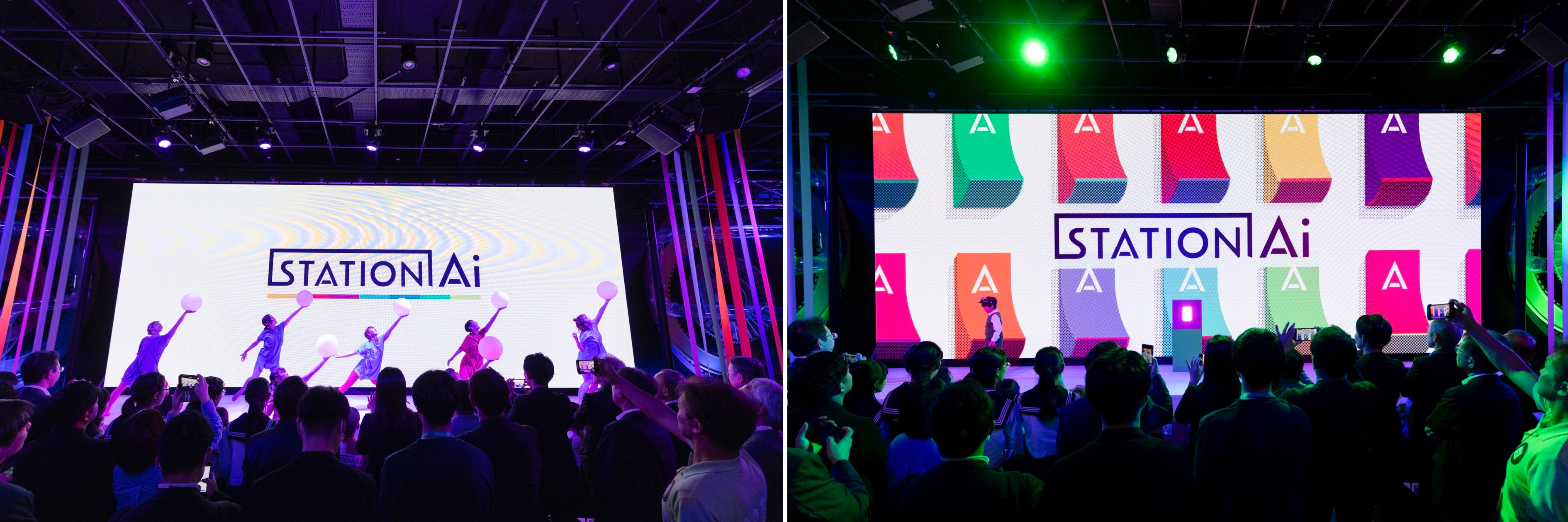 音楽や映像を組み合わせたパフォーマンスで会場全体を巻き込み、STATION Aiのブランドカラーを基調とした華やかな演出でスタートしました。演出後には、愛知県知事の大村秀章様、ソフトバンク株式会社 代表取締役 社長執行役員 兼CEOの宮川潤一様、STATION Ai株式会社 代表取締役社長兼CEOの佐橋宏隆、スタートアップ企業、学生起業家、STATION Aiアンバサダー※の方々が登壇し、STATION Aiのグランドオープンを祝いました。