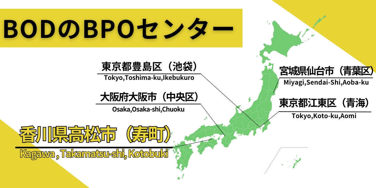 株式会社BOD(本社:東京都豊島区、代表取締役:田中大善、以下「当社」)は、香川県高松市にある既存のBPOセンターを拡充し、2024年11月1日、新たに2つ目の拠点である「インフラBPOプロフェッショナルセンター(仮称、以下「新センター」)」を開設することをお知らせいたします。https://www.bod-grp.com/company/office/