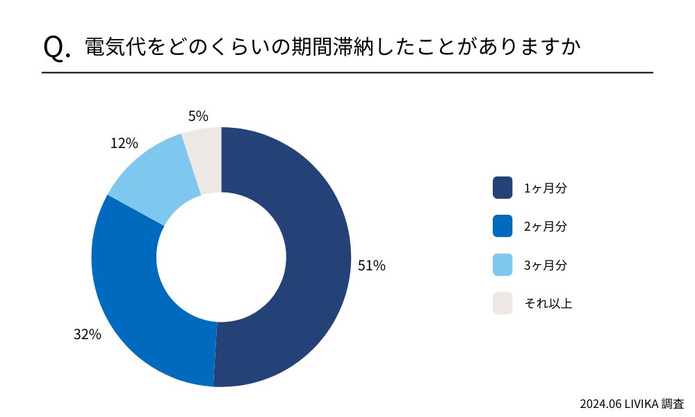 電気代の滞納期間で最も多い回答は「1ヶ月分」で51%