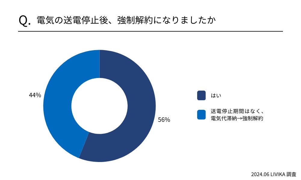 【強制解約】電気の送電停止後、強制解約になったと回答した人56%