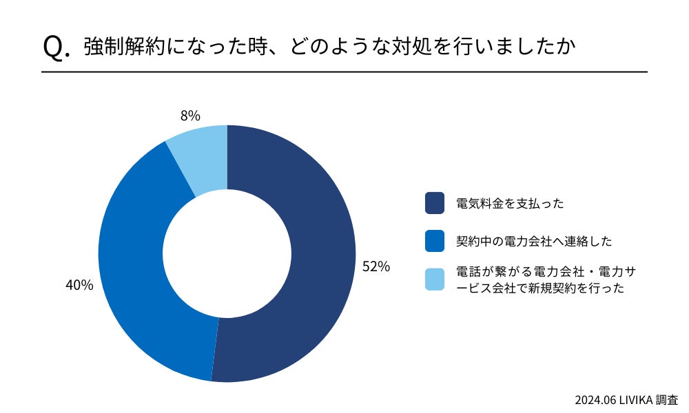 強制解約になった時の対処方法1位は「電気料金を支払った」で52%