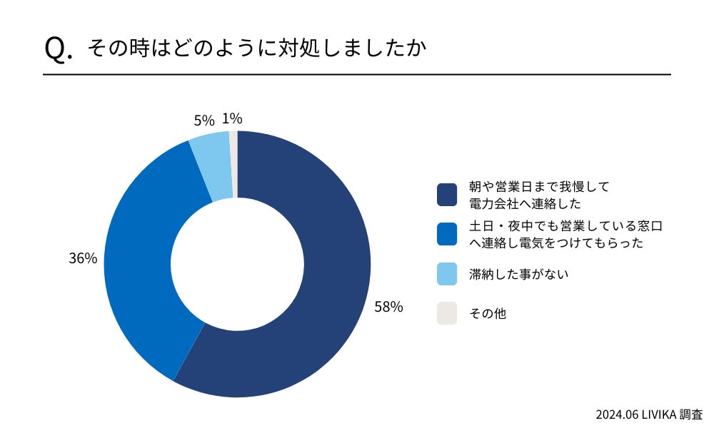 夜間・土日に電気が止まった時は「朝や営業時間まで待って連絡する」が58%