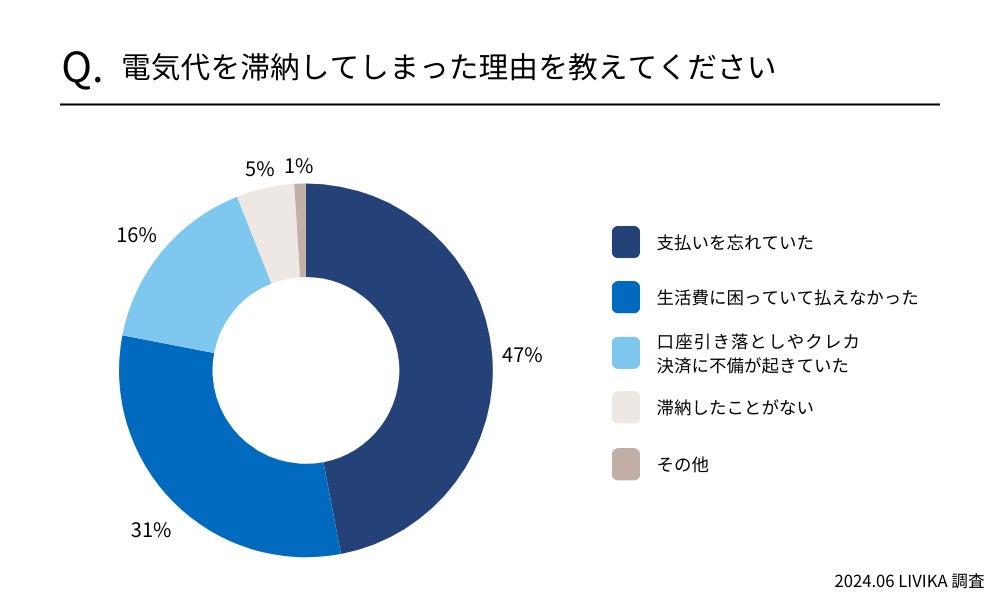 電気代滞納の理由1位は「支払を忘れていた」で47%