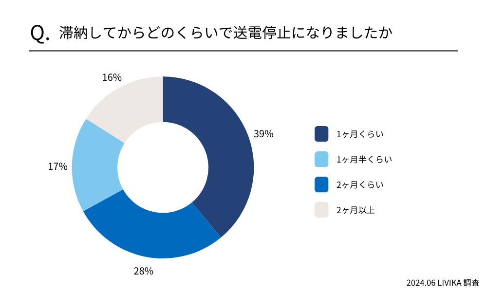 滞納してから送電停止になるまで約4割が「1ヶ月くらい」と回答