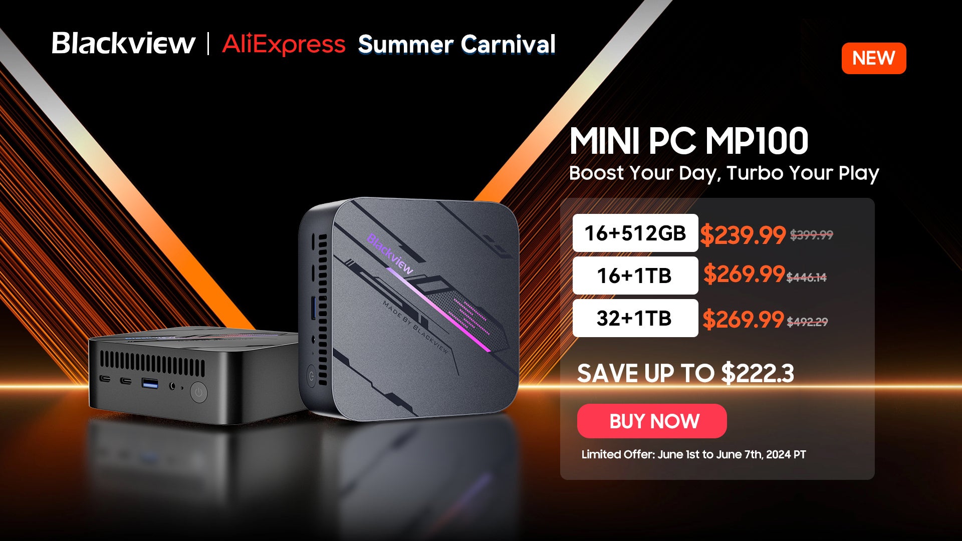 Blackview MP100 | 割引率:35%OFF | 16GB+512GB:239.99ドル 16GB+1TB:269.99ドル 32GB+1TB:269.99ドル |