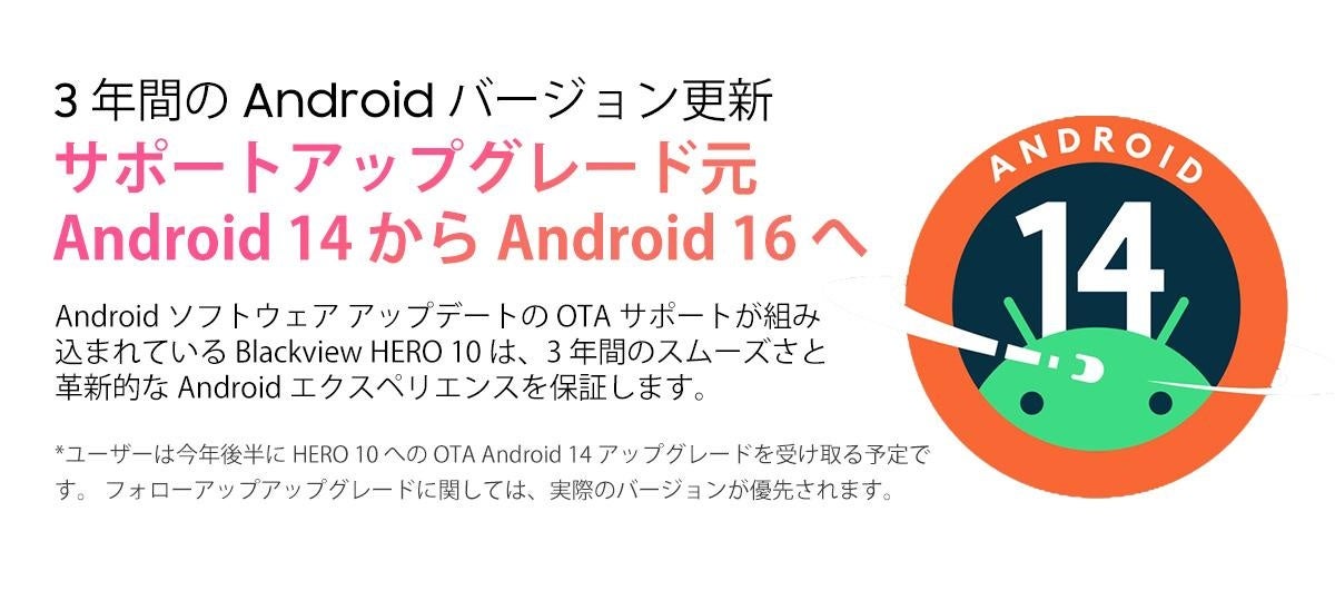 Blackview HERO 10は今後のアップデートに備え、3年間のAndroidバージョンアップデートを提供します。これにより、将来にわたって常に最新かつスムーズなスマホ体験を楽しめるようになっています。