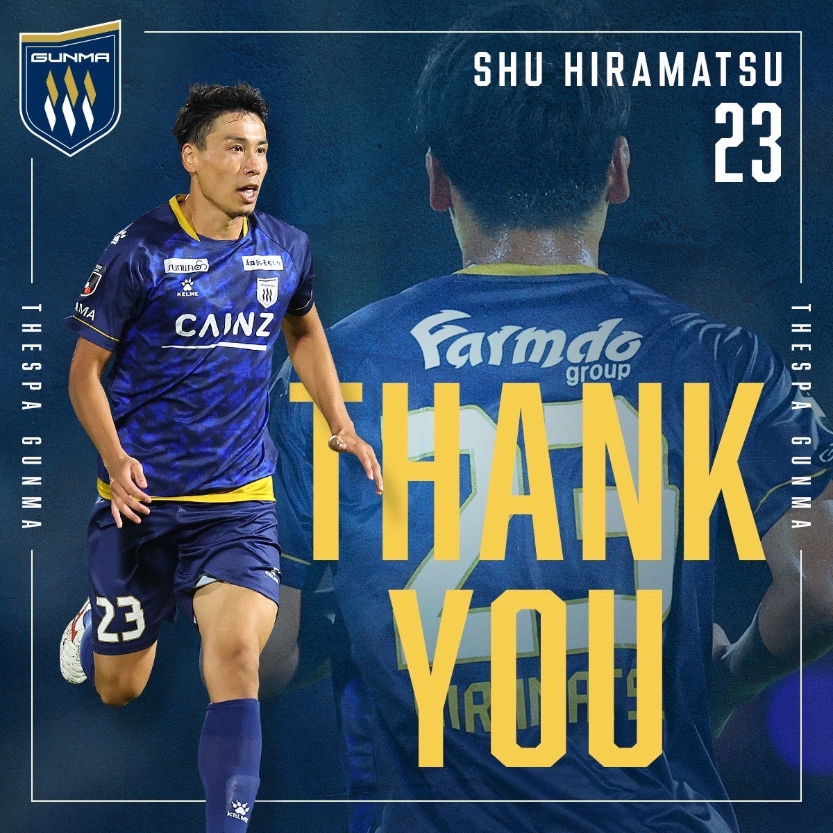 「この度、契約満了により今シーズンでザスパ群馬を退団することになりました。ファン、サポーターの皆さんにはどんな時も支えてもらい、感謝しかありません。ありがとうございました。