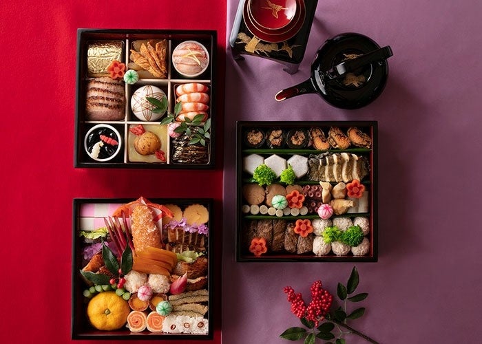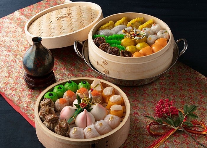 今年はホテル伝統の味をお重に詰め込んだ和洋中三段重、和洋二段重に加え、彩り豊かなスイーツおせちや和洋中のレストラン料理長が腕をふるう「レストランおせち」もご用意。新型コロナウイルス感染症の5類感染症移行後初となるお正月マーケットに向けて、高価格帯のおせちニーズに合わせた日本料理「呉竹」の和風三段重(200,000円)や、本場香港点心師が腕をふるう中国料理「柳城」の点心おせち(32,000円)なども取り揃えました。