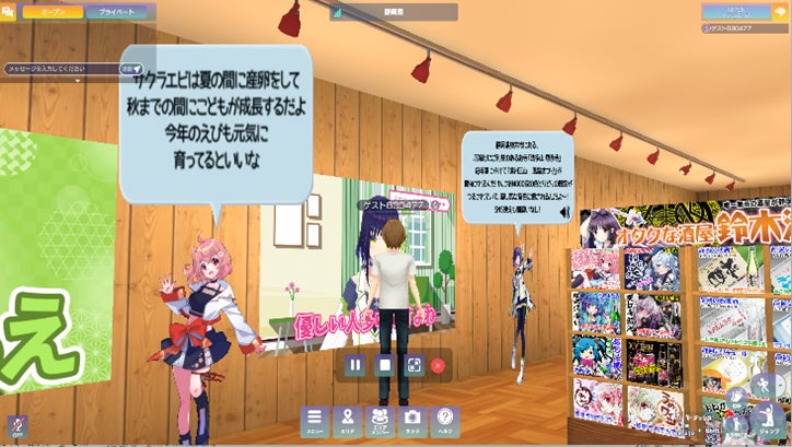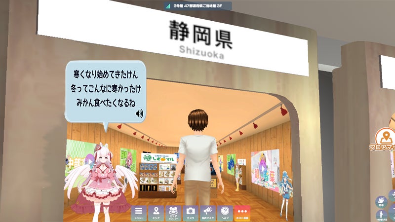 静岡県ショップには現在7名の応援大使が店頭や店内にいて、自分の操作しているアバターが近づくと音声と吹き出しで話しかけてきたり、動画で紹介したりします。