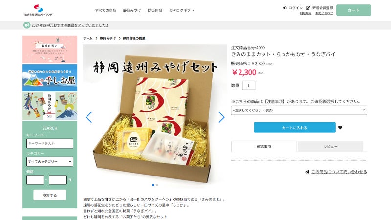 静岡空港や、新東名高速道路のサービスエリアの売店として展開している『しずおかマルシェ』では、通信販売で静岡の名産をお求めやすくセットにしてくれているのでギフトとしても、自分の為のお試し買いにも利用しやすいので、静岡名物として非常に有名な「うなぎパイ」や名産の缶詰はとても魅力的な商品になっていると思います。