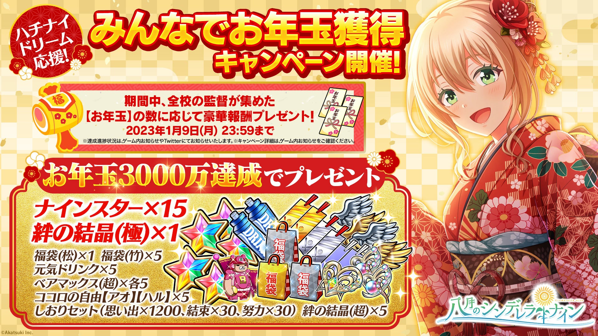 ■最大ナインスターが15個もらえるチャンス!「ハチナイドリーム応援!みんなでお年玉獲得キャンペーン」開催