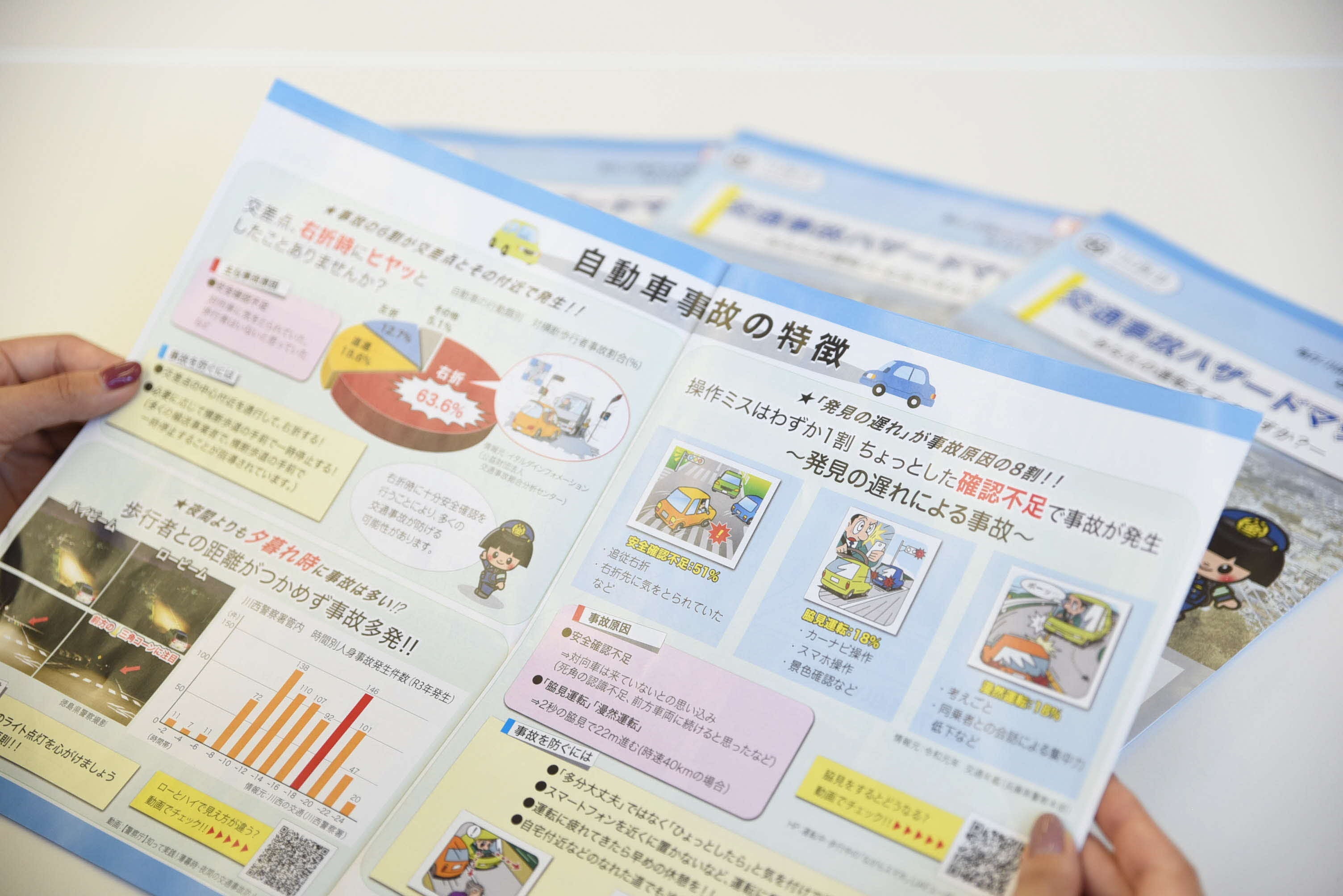 また、ハザードマップには事故発生箇所の情報に加え、自動車事故・自転車事故が発生する要因などをイラストや写真を用いて解説。交通事故に遭わないだけではなく起こさないために必要な情報を掲載している。