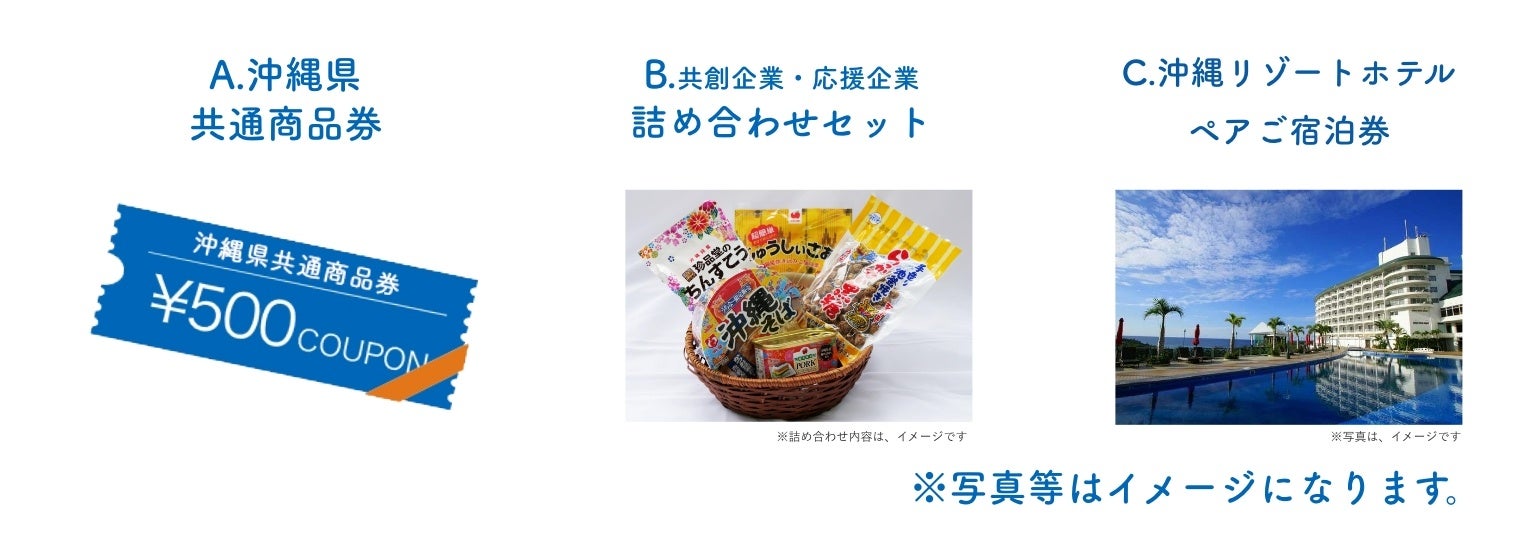 また、プレゼントの一部はNPO団体「おきなわこども未来ランチサポート」「フードバンクセカンドハーベスト沖縄」に寄付をし、沖縄県をつながりで応援するプロジェクトです。全国からご参加いただけるWEBキャンペーンとなっておりますので、応援よろしくお願い申し上げます。