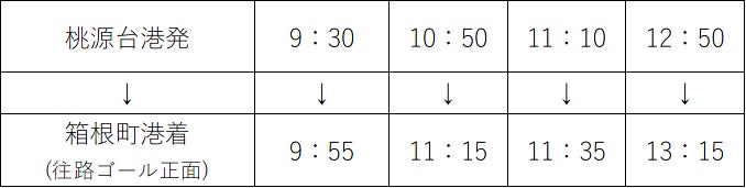 桃源台港発 9:50と11:20(所要時間約30分)