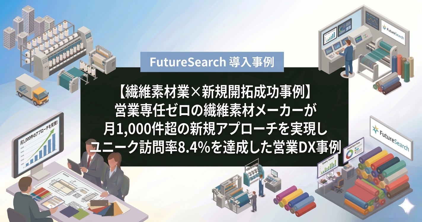 株式会社FUTUREWOODS(本社:東京都文京区、代表取締役:小浜勇人)は、BtoB営業支援ツール「FutureSearch(フューチャーサーチ)」を活用し、繊維素材メーカーC社が営業専任担当不在の体制で月1,000件超の新規アプローチとユニーク訪問率8.4%を達成した活用事例を公開しました。