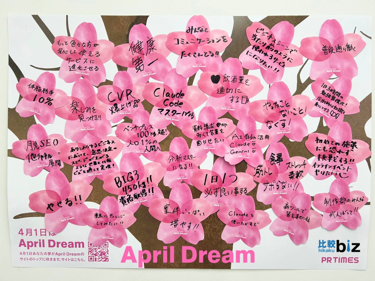 当社は、4月1日を夢を発信する日にしようとするApril Dreamに賛同しています。このプレスリリースは比較ビズの夢です。