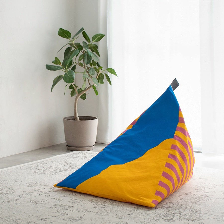 体勢に合わせて変形するビーズクッション「tetra(テトラ)」。どんなお部屋にも馴染み、インテリアのワンポイントとしてくつろぎスペースを彩ります。