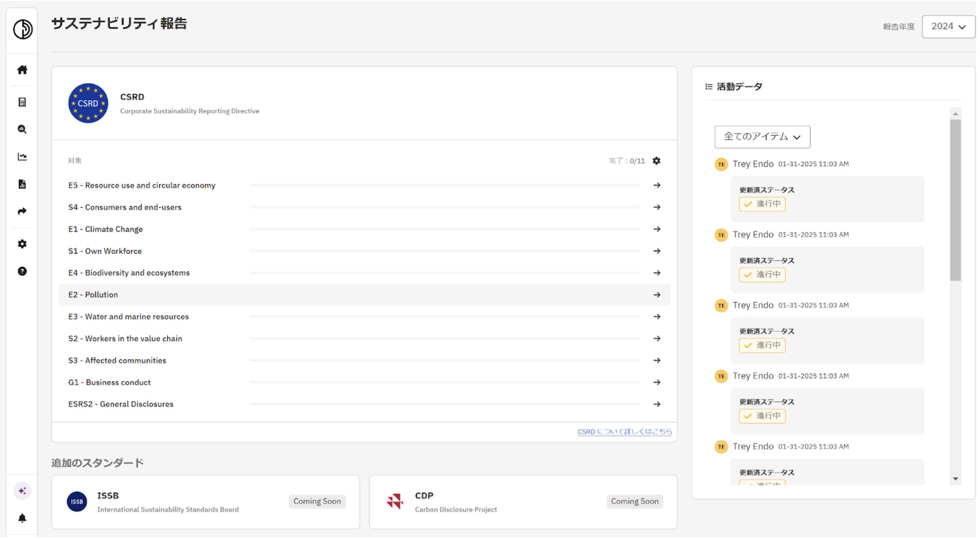 ISSBやCDPのレポーティングを効率化する機能をリリース予定です。これにより企業のサステナビリティに関するレポーティング業務をさらに高度化いただくことが可能になります。