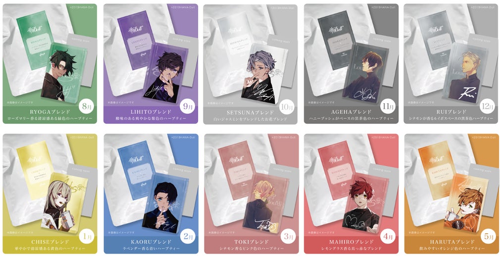定期便での展開にあわせて、各メンバーをイメージしたハーブティーとアクリルブロックのセットが月毎に発売されていきます。