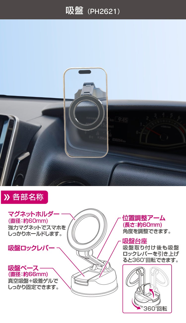 マグネットスマホホルダー 吸盤(PH2621)