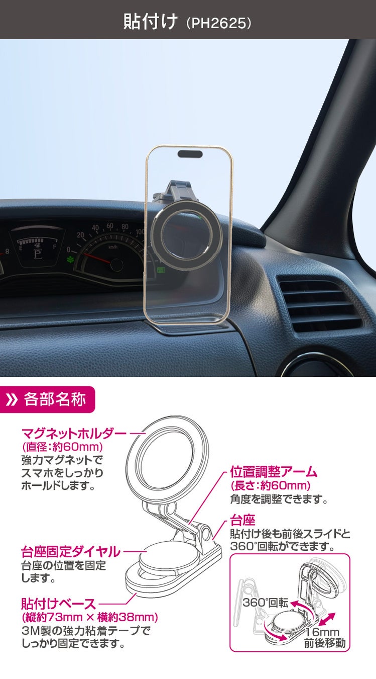 株式会社ペルシード(本社:愛知県愛知郡東郷町)は、強力マグネットでスマートフォンをホールドできるショートアームタイプのスマートフォンホルダー4製品(オープン価格)を、2026年2月より全国のカー用品店およびECサイトにて発売いたしました。