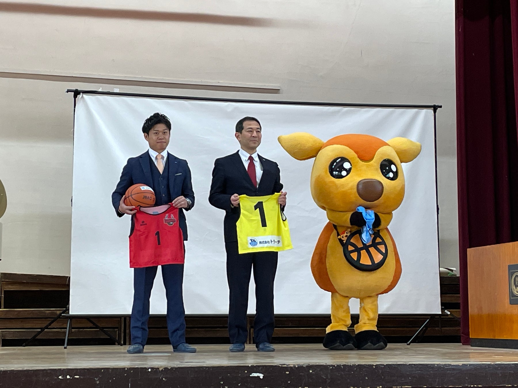 稲場 代表取締役は、3人のお子さんが同校へ通われており、このタイミングでバスケットボールを贈ることができてとても嬉しいと想いを述べられました。