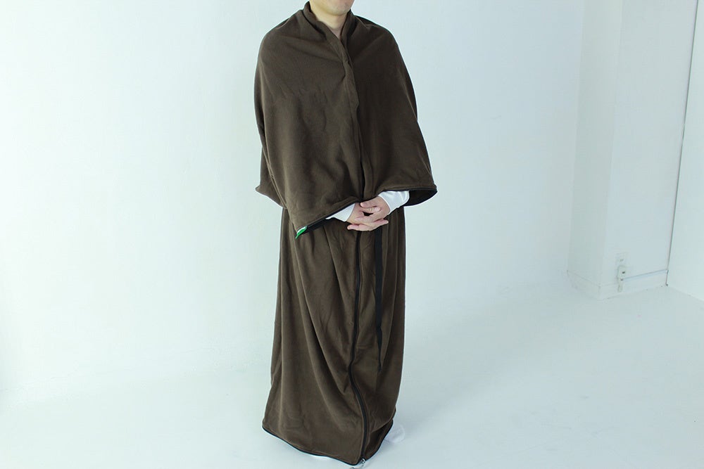 寝袋に入れて毛布のように使うことはもちろんですが、バックル付きベルトを使うことでポンチョ風にアレンジすることも可能!着たまま動くことができます。