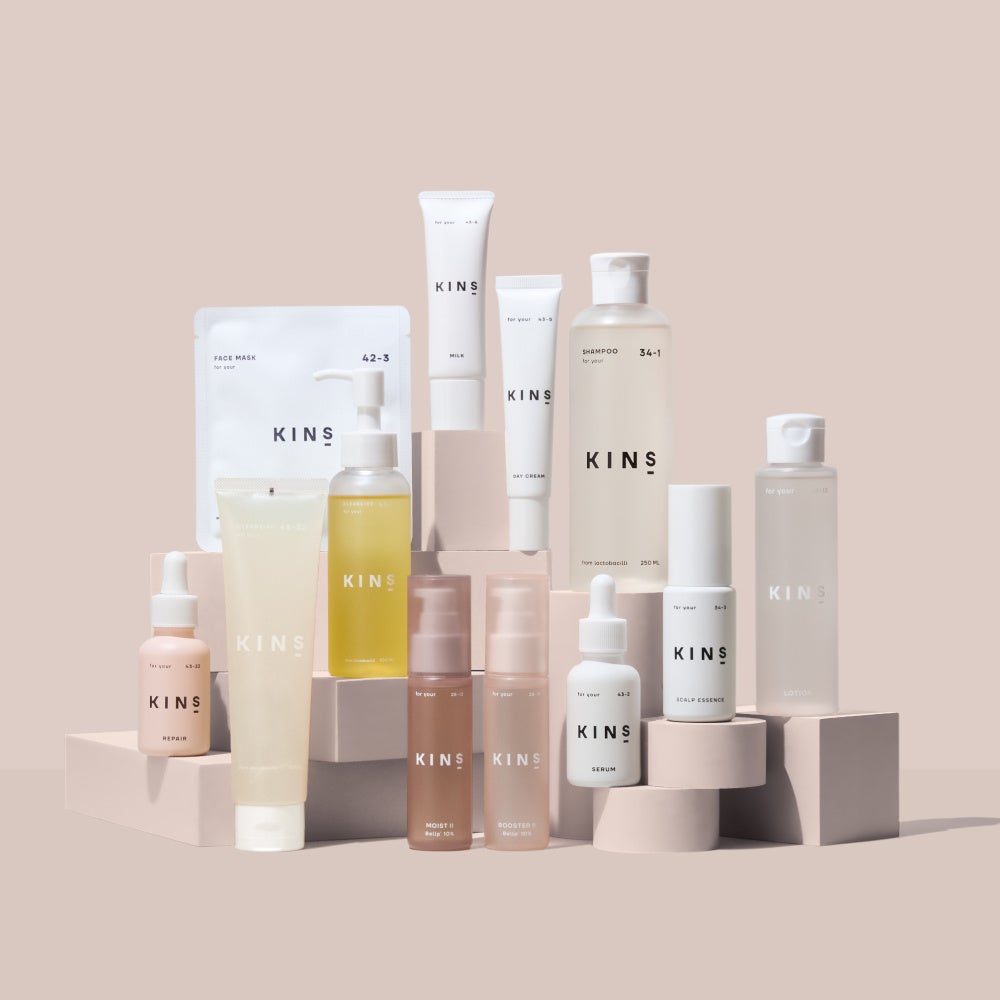 KINSは「菌と生きる。体が生きる。」という理念のもと、常在菌に着目し、肌と体を根本から整えるブランドです。人体に存在する約38兆個もの常在菌とここちよく共存し、お互いによい影響を与え合う生き方を提案しています。