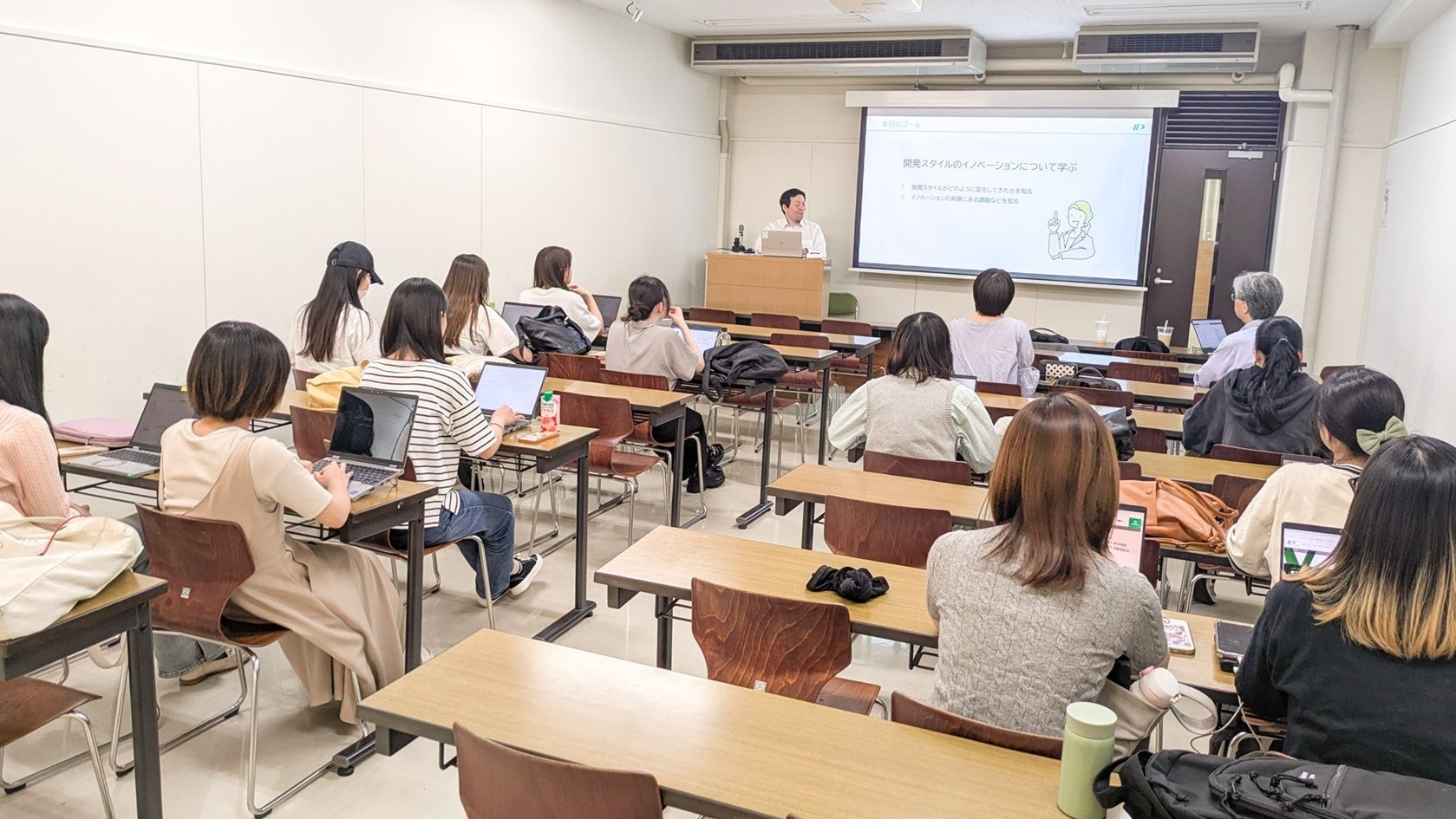 現役エンジニアがIT業界でのさまざまなイノベーションについて講義を行いました。本講義では、「開発プロセスのイノベーション」、「開発スタイルのイノベーション」、「技術のイノベーション」の3つのテーマに焦点を当て、講師自身の実務経験を交えながら、業界の最新動向や技術革新の背景について具体的かつ実践的に解説しました。質疑応答の時間では参加学生から多くの質問が寄せられ、IT業界への関心の高さが感じられる有意義な講義となりました。