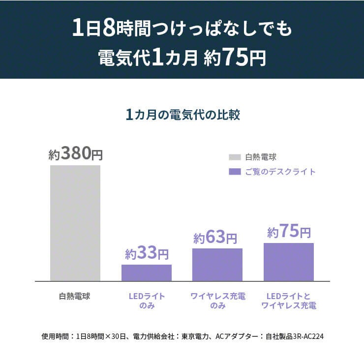 電気代は1日8時間使用して、1か月でたったの約75円です。