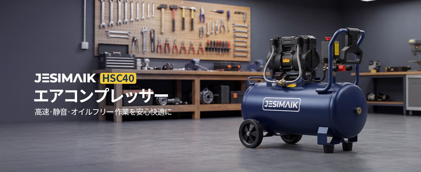もうエアー切れで手を止めない!40L大容量×超速充填で余裕の連続作業を!JESIMAIKエアコンプレッサー「HSC40」新登場
