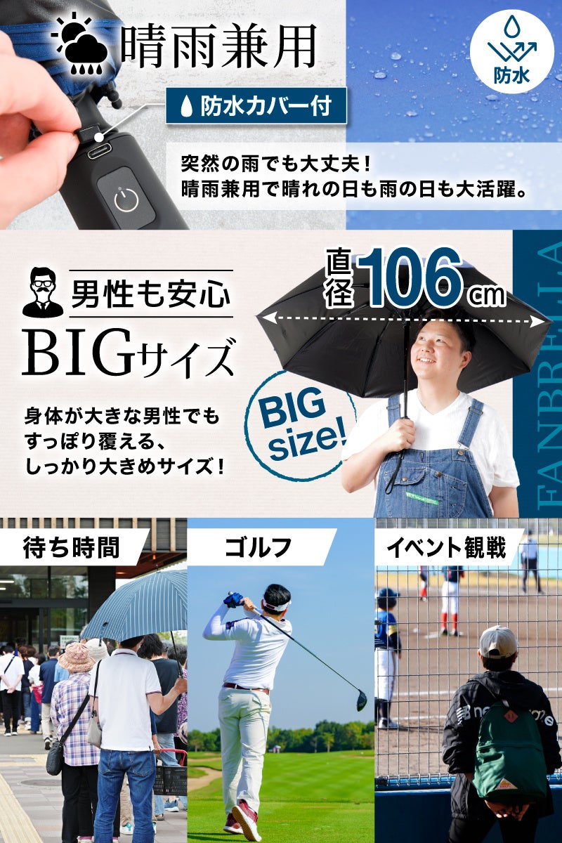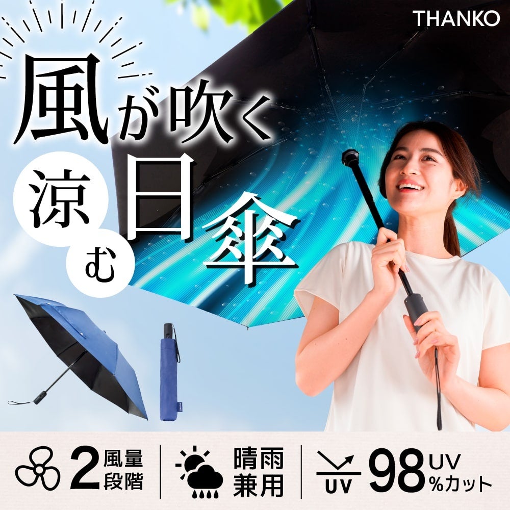 ファンで涼む新しい日傘「折りたたみファンブレラ」