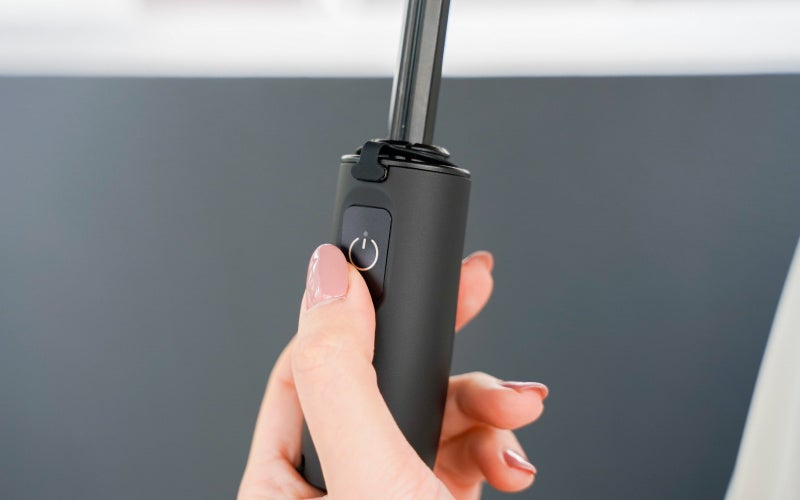 傘を開いた状態で持ち手部分の電源ボタンを押すとファンが回転し風を送ります。