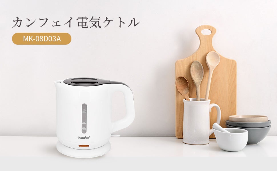 COMFEE' 電気ケトル 1.0L カンタン 急速沸騰 空焚き防止