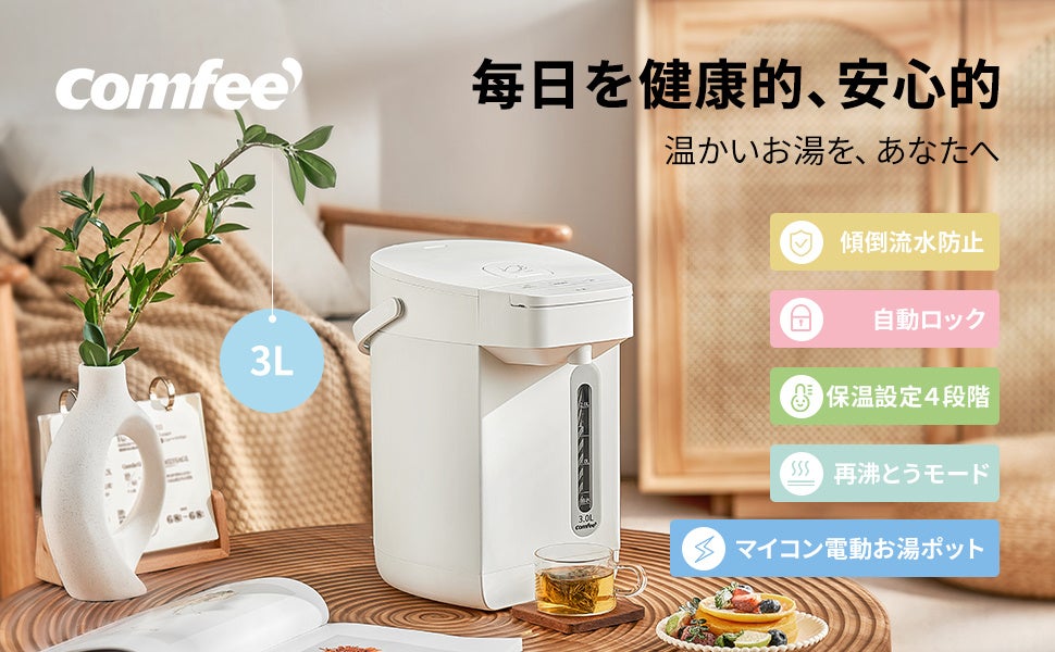 COMFEE' 3L電気ポット、温かいお湯を、あなたへ