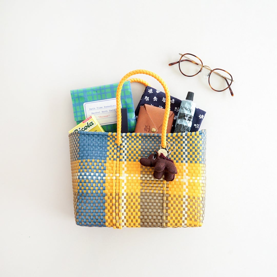 メルカドバッグはもともとヤシの葉を用いた手工芸品でしたが、1990年代にプラスチックコードで編まれるようになりました。水に強く丈夫で劣化しづらいプラスチック製のバッグは利便性が高く、現地でも急速に普及し始めました。