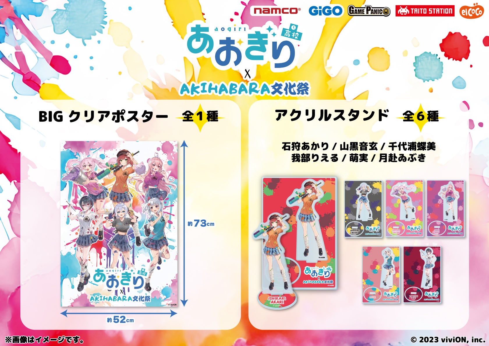 人気VTuberグループ『あおぎり高校』よりAKIHABARA文化祭のコラボビジュアルの「BIGクリアポスター」と「アクリルスタンド」がプライズで登場!