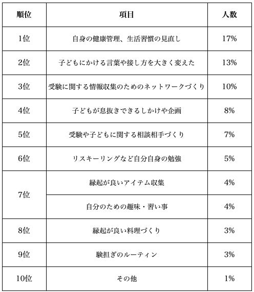 【子どもが受験生になり、受験のために保護者が始めたことランキング】